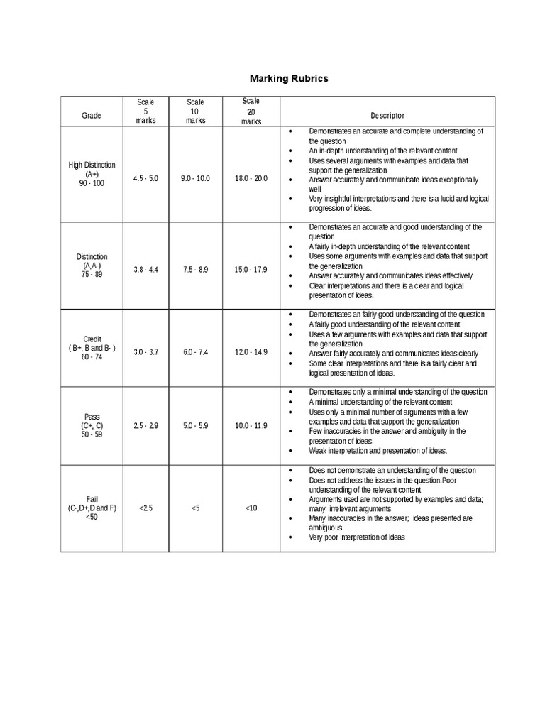 Marking Rubrics: Grade Scale 5 Marks Scale 10 Marks Scale 20 Marks ...