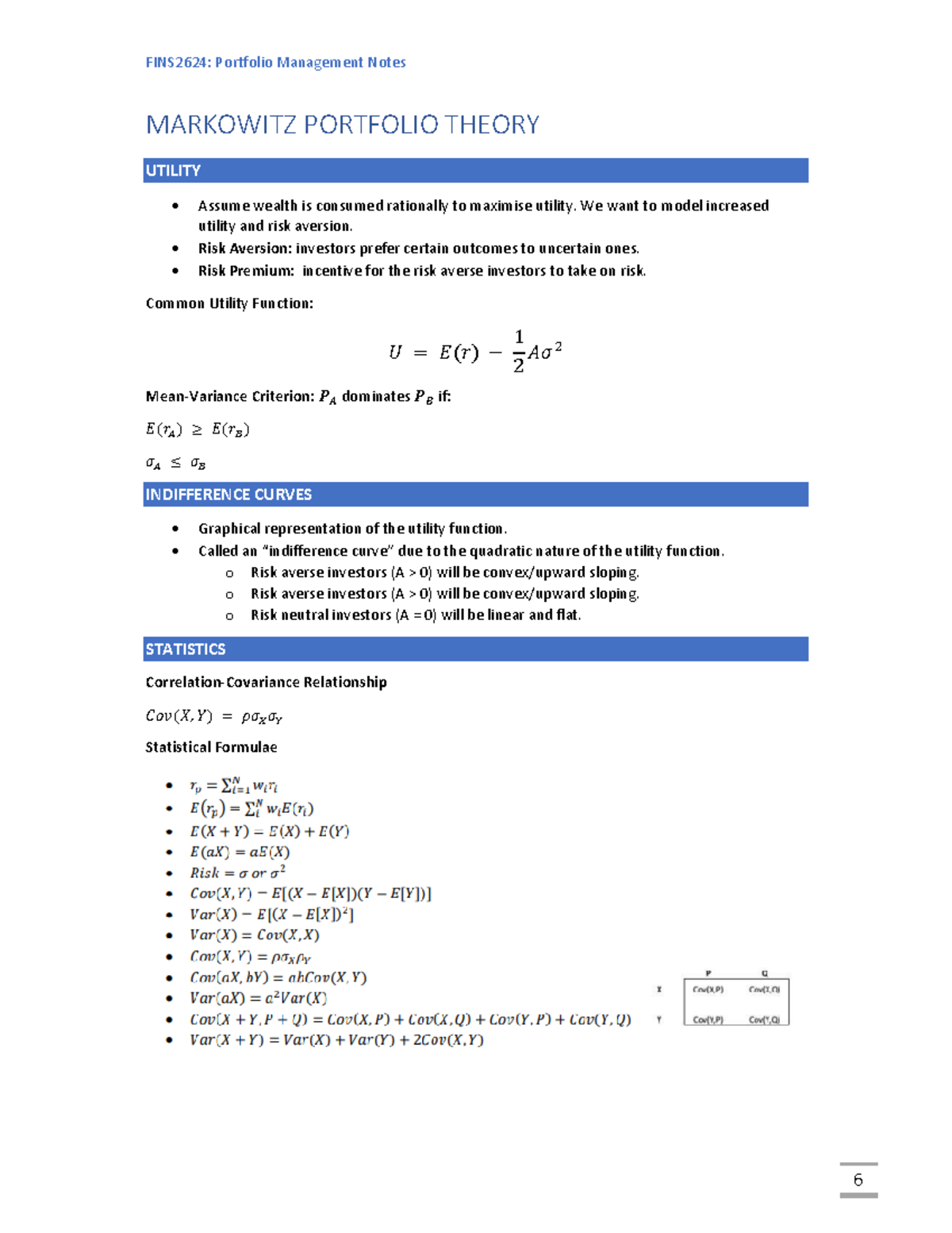Markowitz Portfolio Theory Summary Notes - Warning: TT: undefined ...