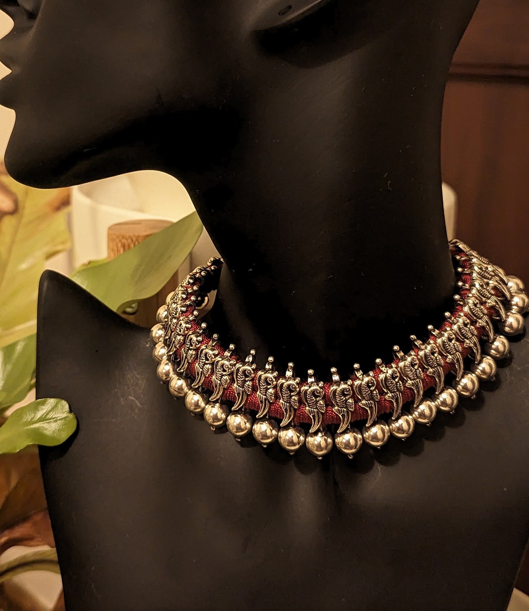 925 Hallmarked Pure Silver Maroon Thread Choker - Etsy UK