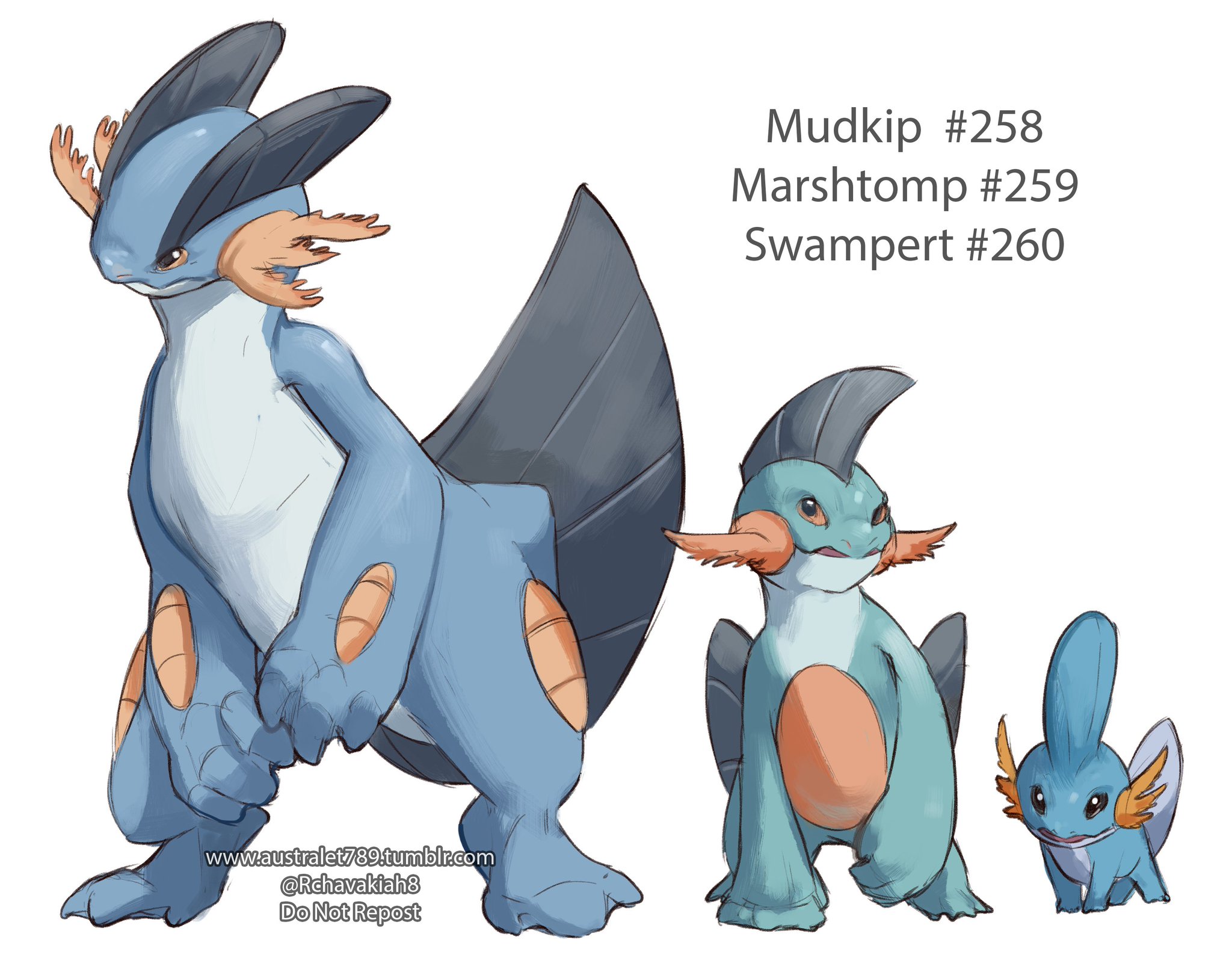 🎨 Mudkip,Marshtomp,Swampert,Mega Swampert Evolution -- FAN ART ...