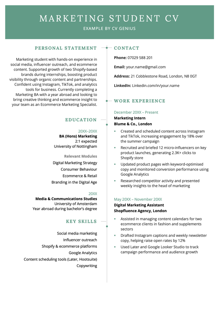2 Marketing Graduate CV examples + guide [Start your career]