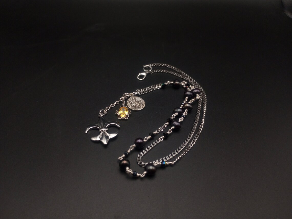 Antique St Martin of Tours Necklace: Black Pearl Chaplet With Topaz - Etsy