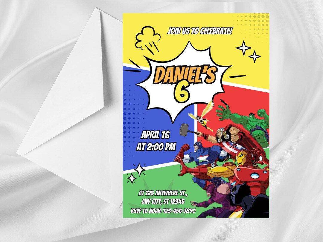 Marvel Comic Birthday Invitation, Superhero Party Invite, Marvel ...