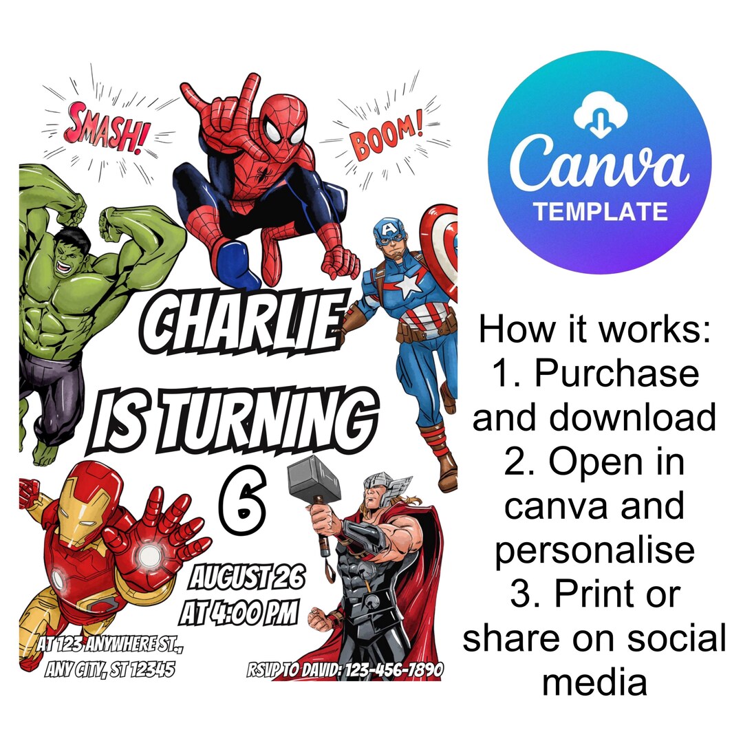 Avengers Marvel Digital Invitation Template - Canva - Printable ...