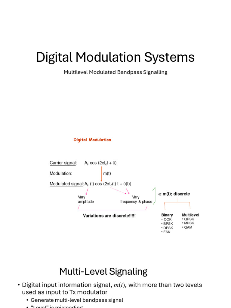 M-ary Modulation, noise modelling, bandwidth, Bandpass Modulation | PDF ...