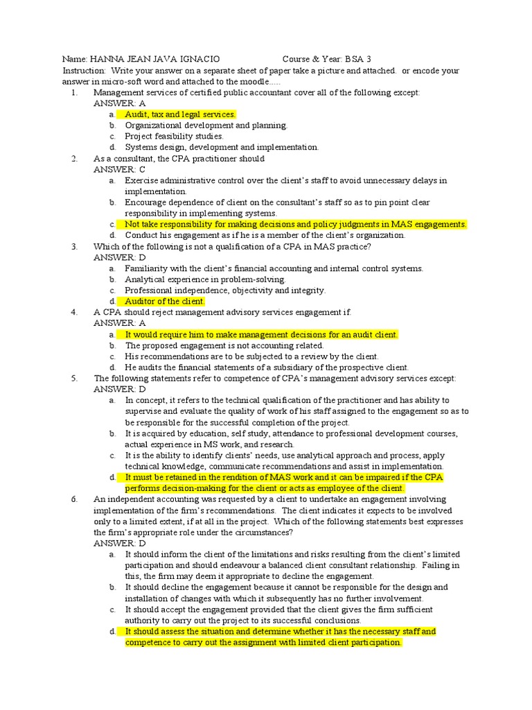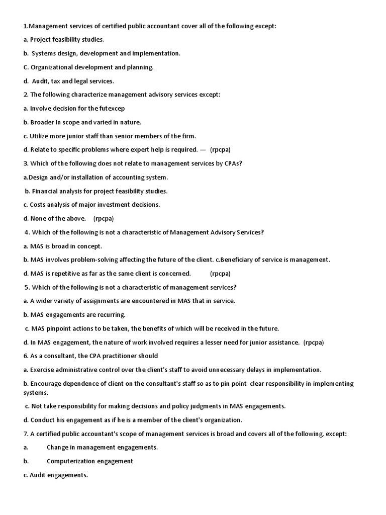 Mas Questions | PDF | Consultant | Certified Public Accountant
