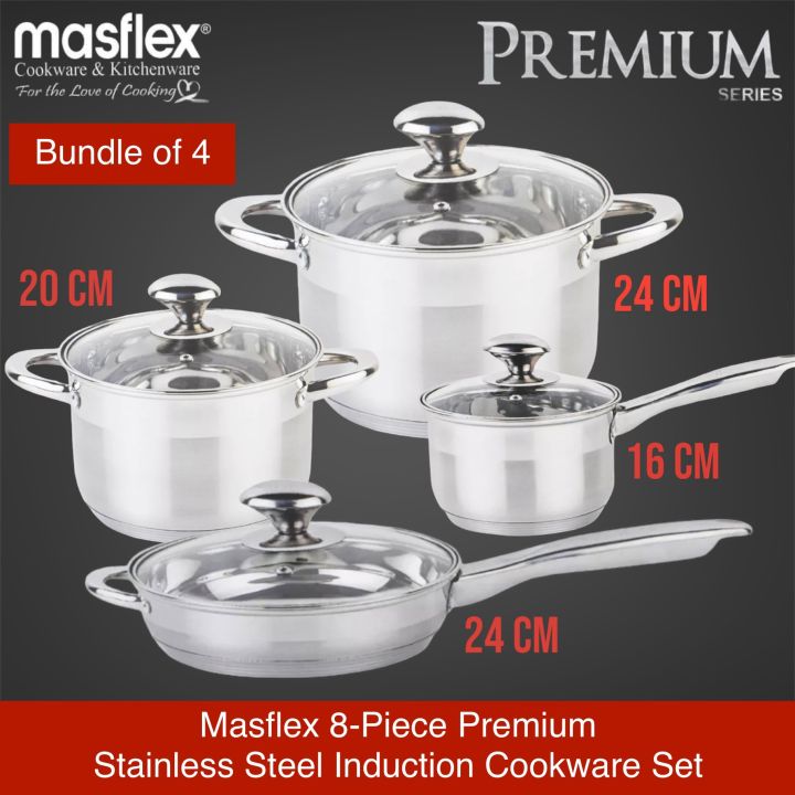 Masflex 8 Piece Premium Stainless Steel Induction Cookware Set | Shopee ...