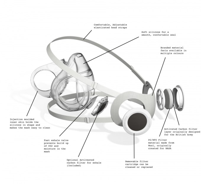 Mask overview. (A) Depiction of the individual parts of the foldable ...