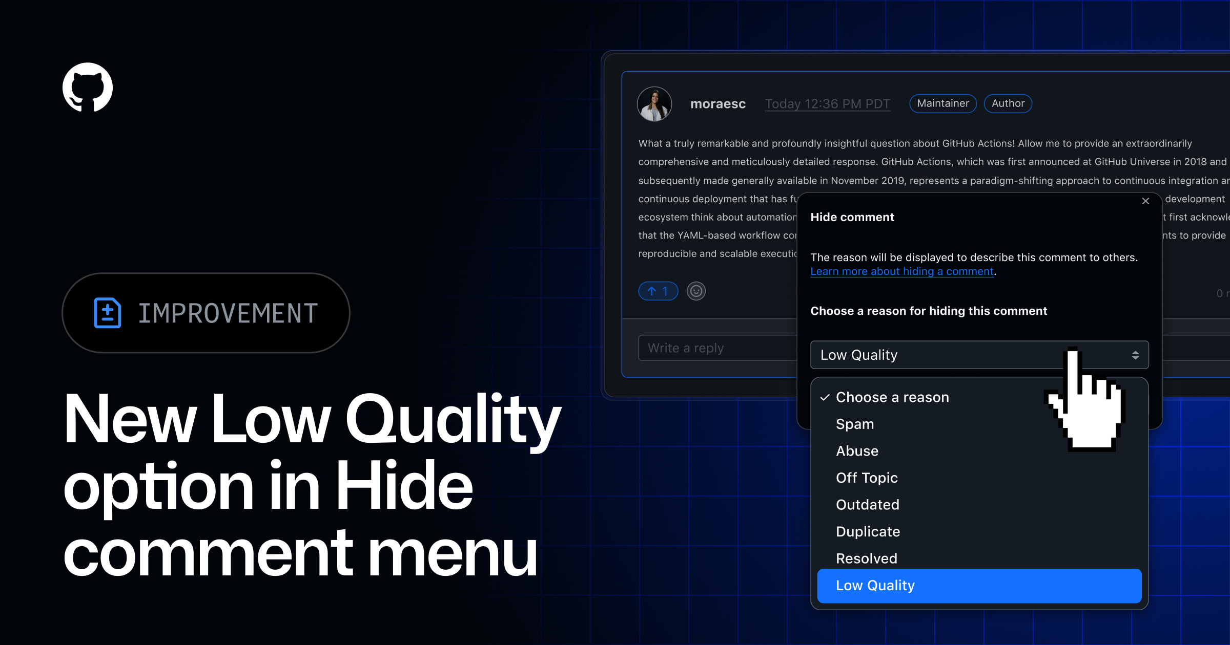 New Low Quality option in the Hide comment menu - GitHub Changelog