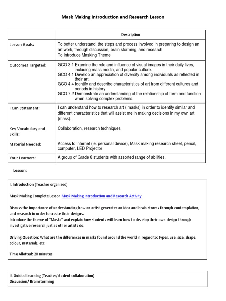 Mask Making Introduction Lesson | Download Free PDF | Mask | Collaboration