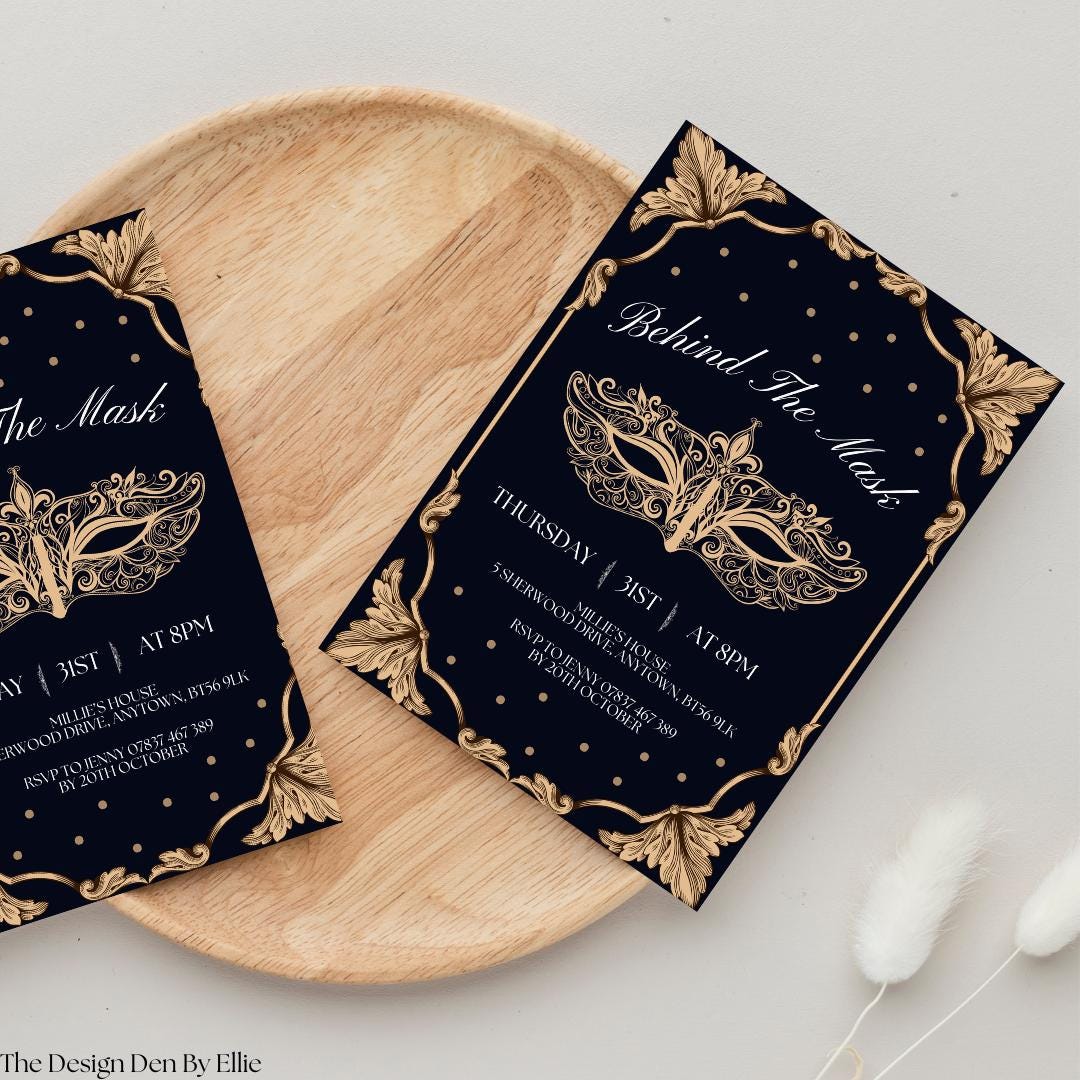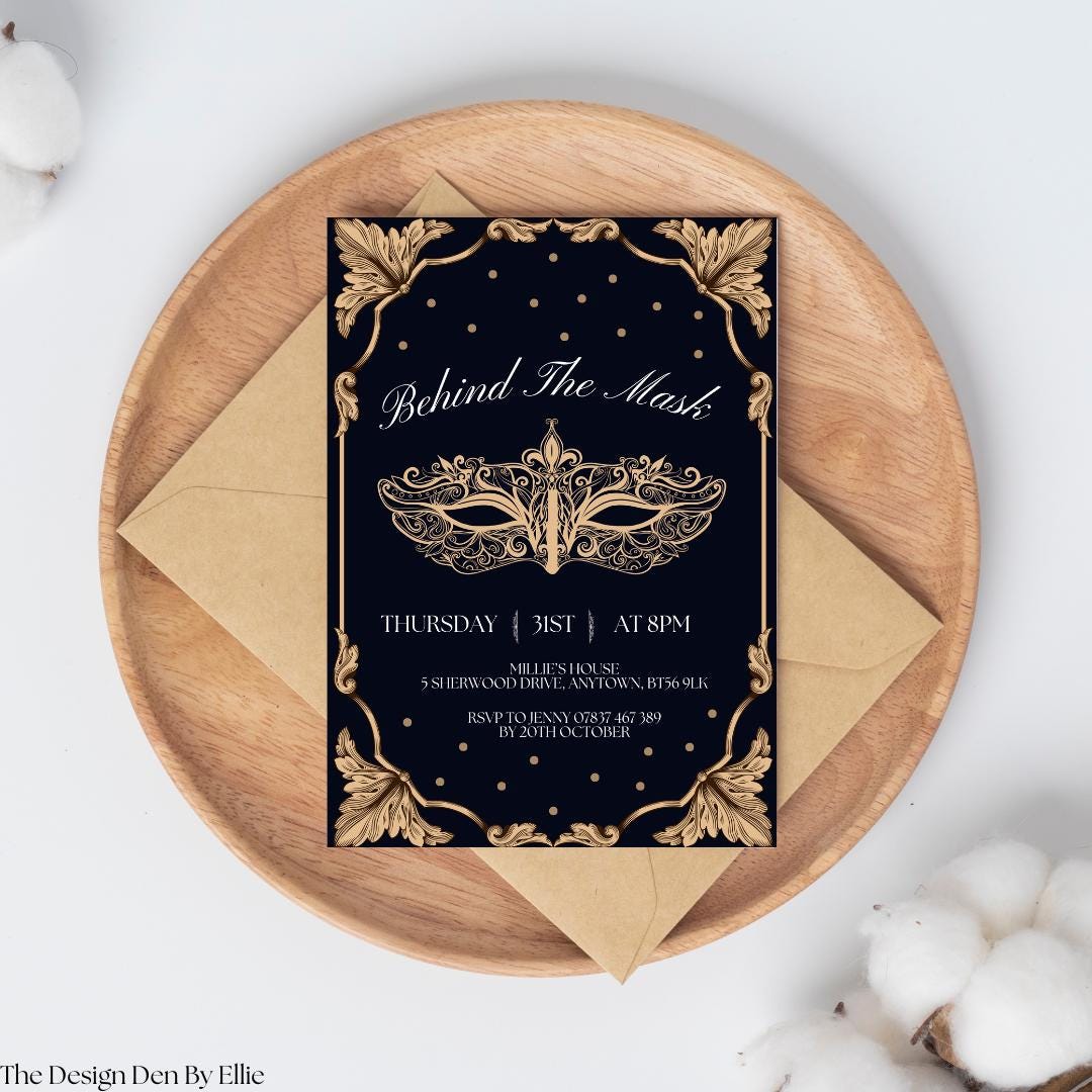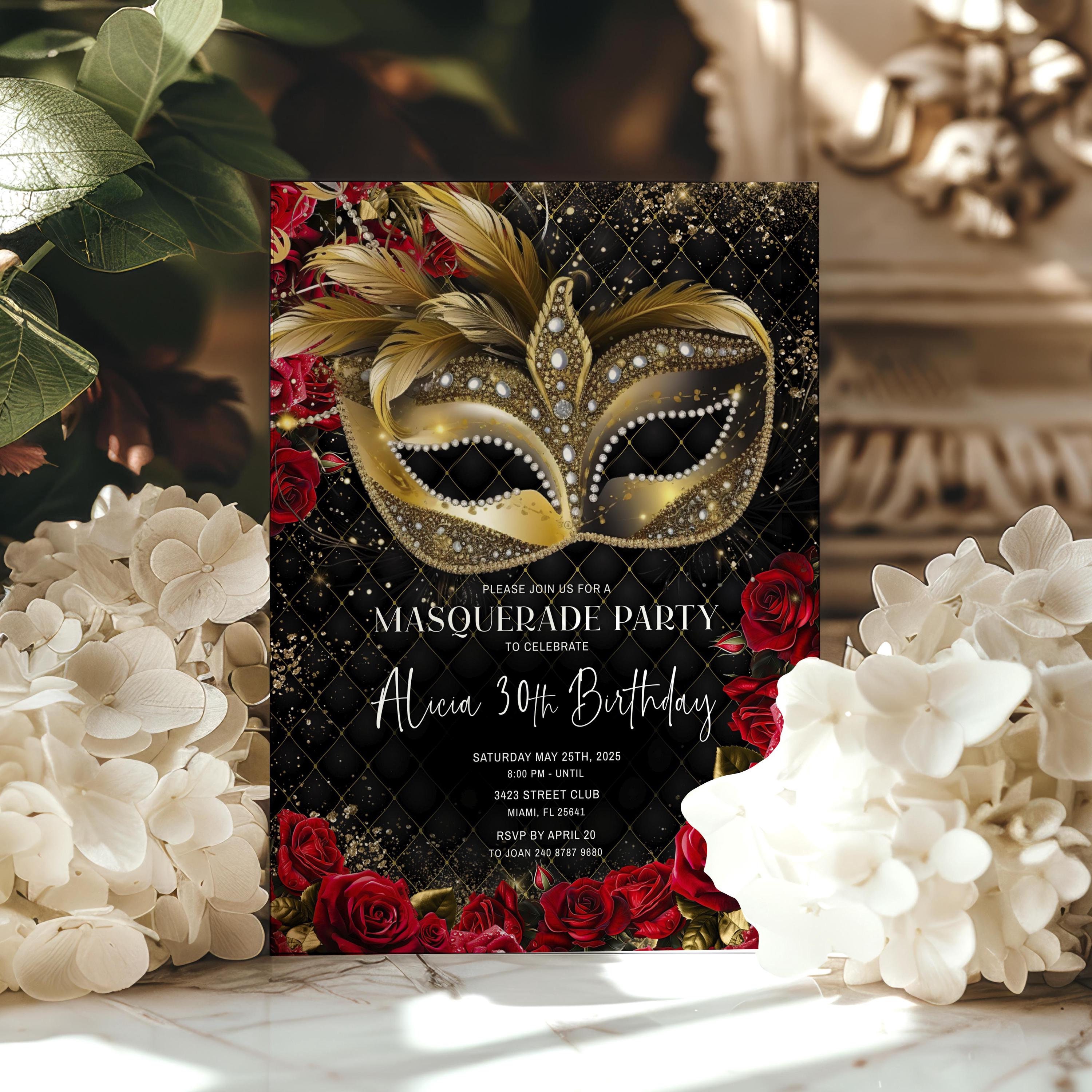 Editable Masquerade Birthday Party Invitation, Luxury Birthday Invite ...