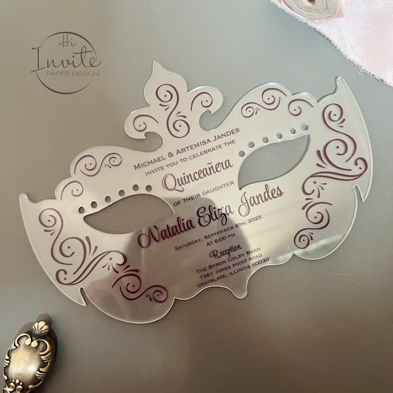 Elegant Acrylic Invitation for Masquerade Party, Masquerade Invites ...