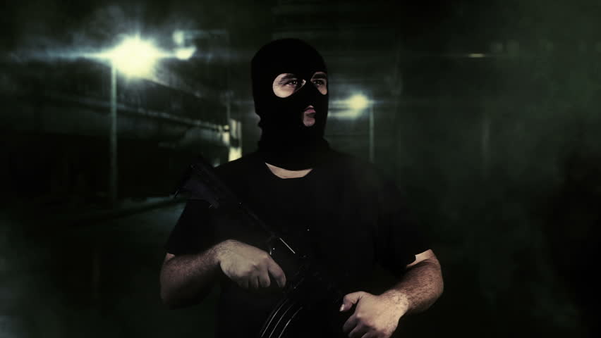 masked commando man gun scary alley Stock Footage Video (100% Royalty ...