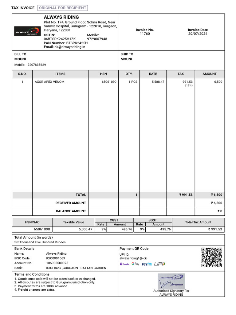 Helmet Bill Invoice #11760 | PDF | Government Finances | Taxes
