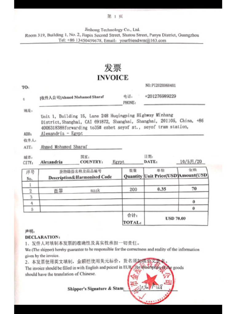 MSI-20-006 Mask Invoice | PDF | Invoice | Trade