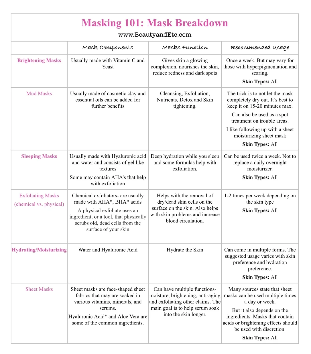 Masking 101: Masks Breakdown — Beauty and Etc.