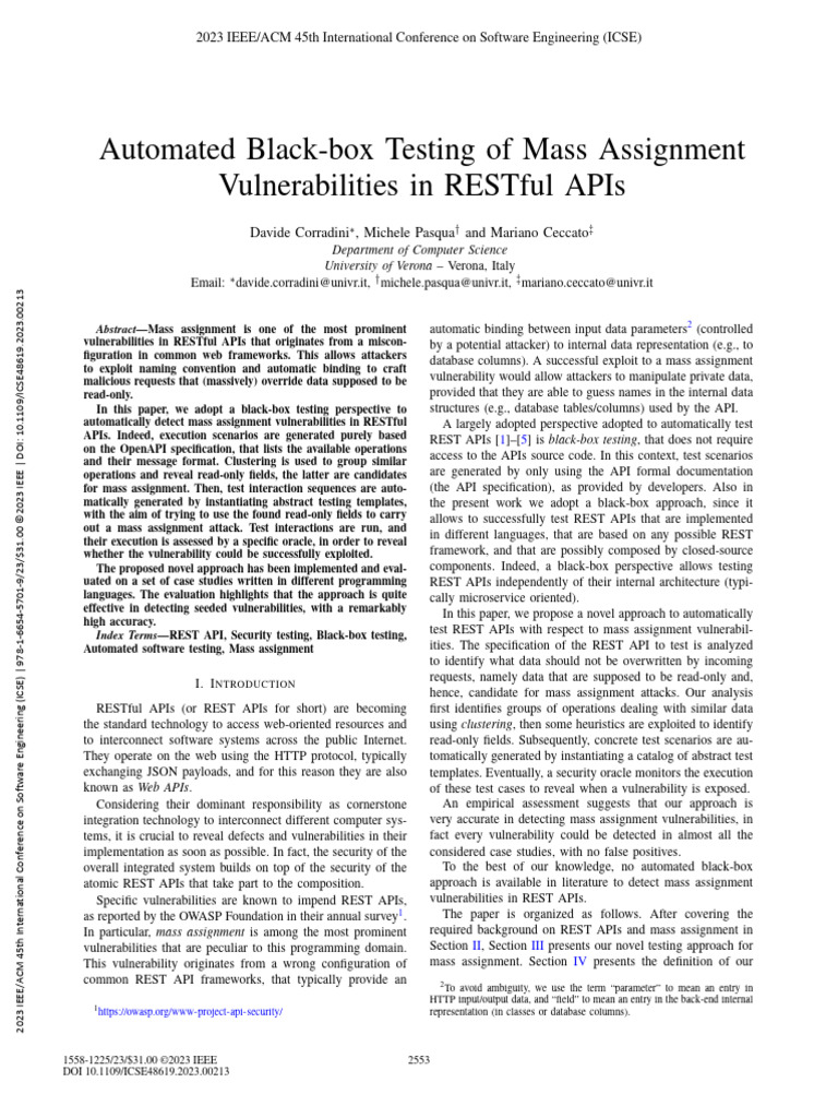 (PDF) Automated Black-box Testing of Mass Assignment Vulnerabilities in ...