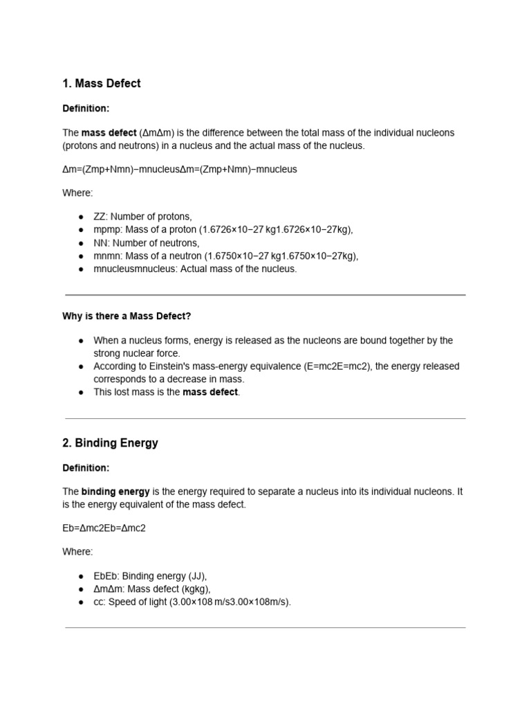 Mass Defect | PDF | Atomic Nucleus | Physics