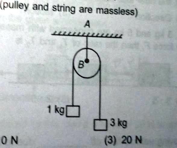 (pulley and string are massless) A B 1 kg 3 kg (3) 20 N