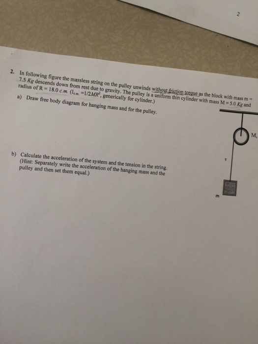 Solved Pulley with a mass hanging down A massless string | Chegg.com