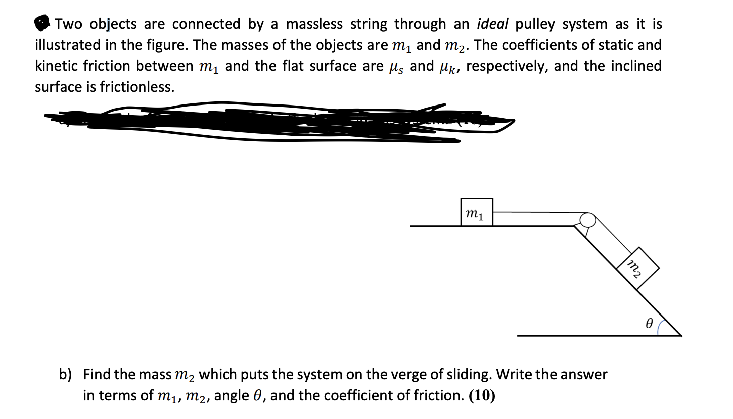 Assuming an ideal pulley and massless strings, what are the values of the..