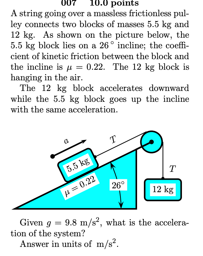 Solved A string going over a massless frictionless pul- ley | Chegg.com