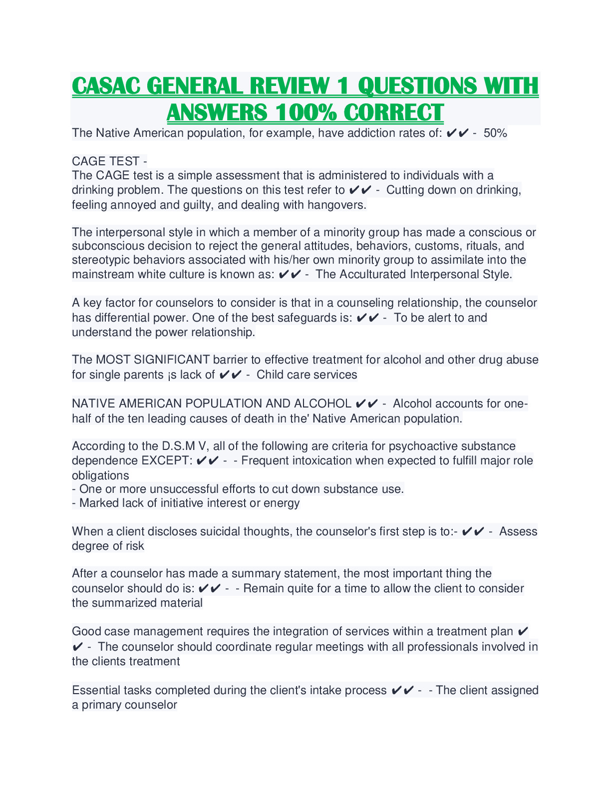 CASAC STUDY GUIDE WITH QUESTIONS AND ANSWERS (VERIFIED ANSWERS GRADE A ...