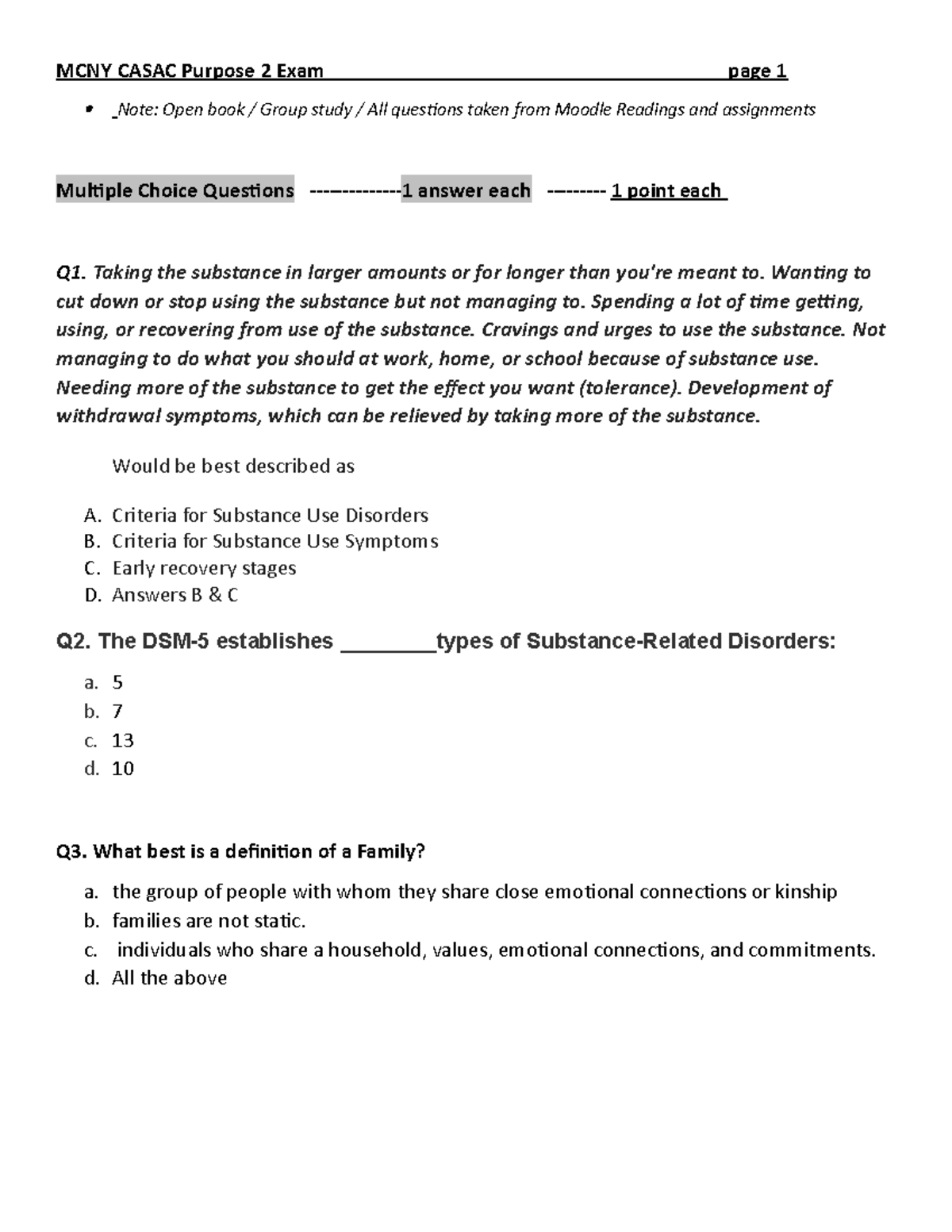 CASAC EXAM I QUESTIONS WITH ANSWERS 100% CORRECT - DocMerit