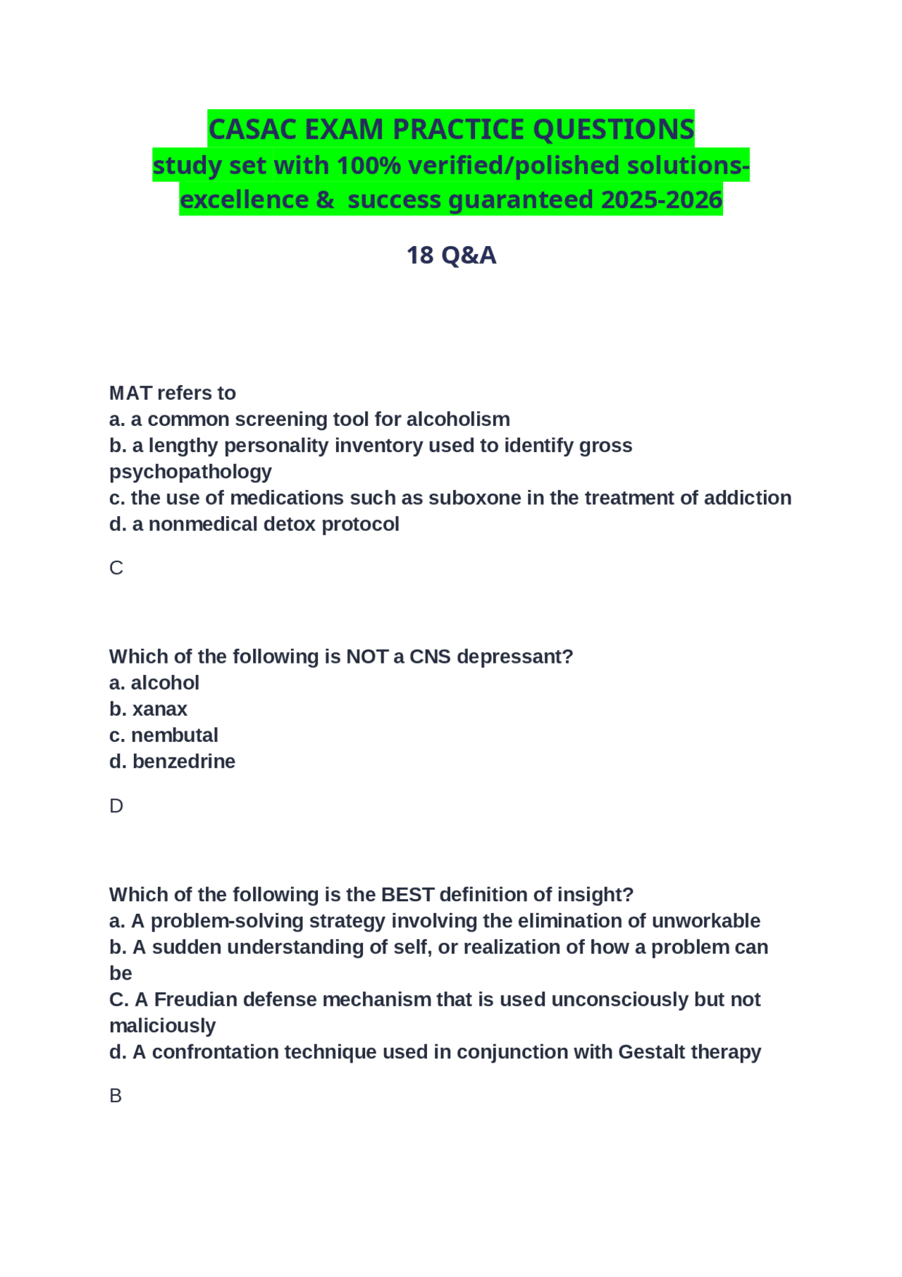 CASAC EXAM Questions with All Correct Answers - CASAC - Stuvia US