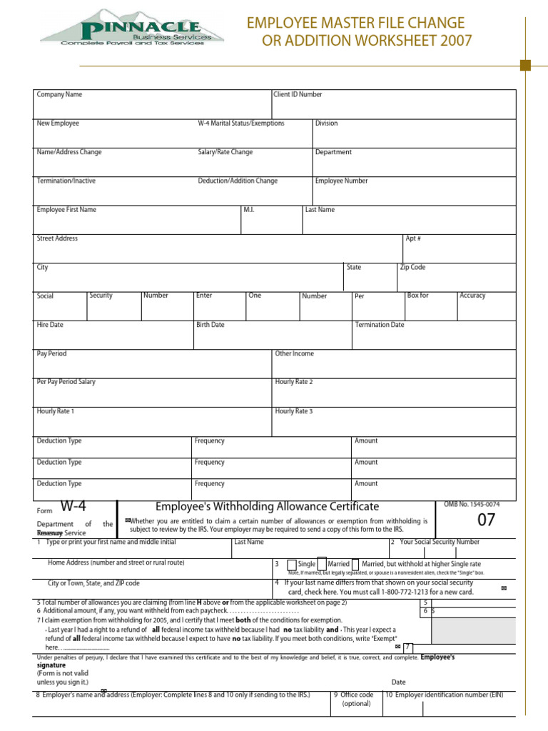 Pinnacle Employee Master File Change or Addition Worksheet | PDF ...