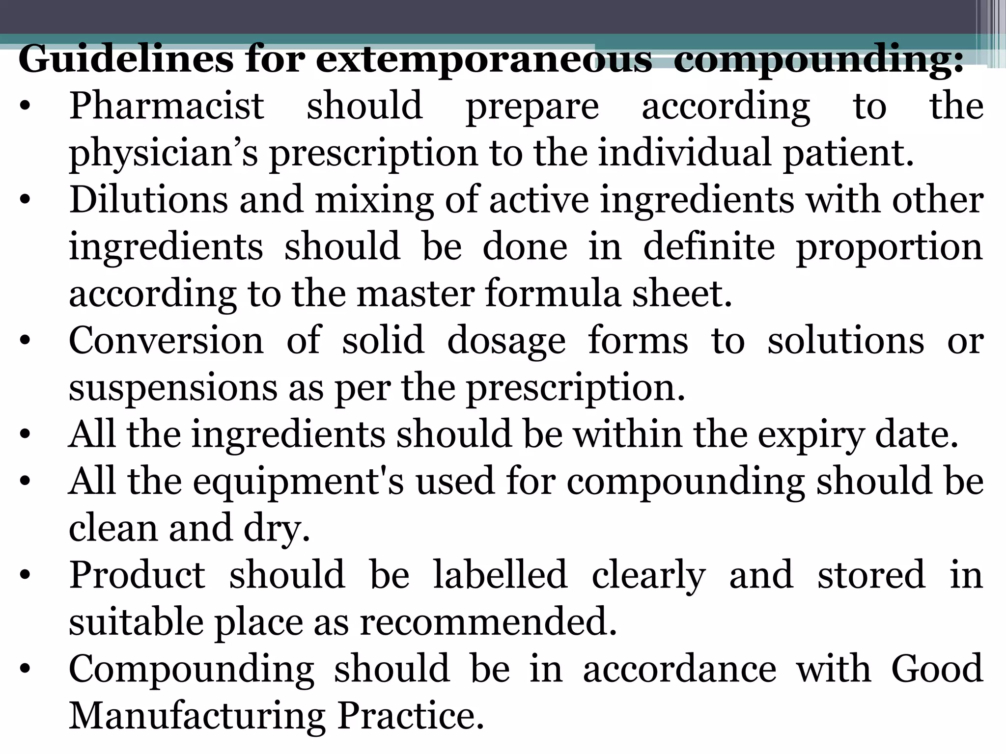 Chapter 8 Extemporaneous Compounding Learning Objectives Define the
