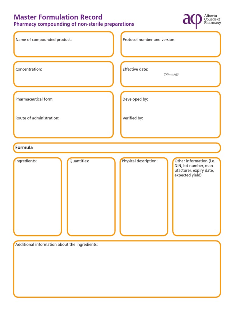 Master Formulation Record for Pharmacy Compounding: Guidelines ...