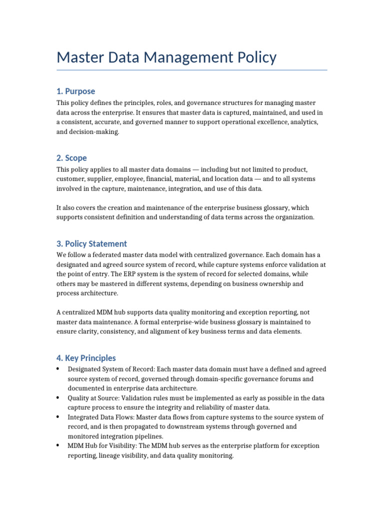 Master Data Management Policy Updated | PDF | System | Governance