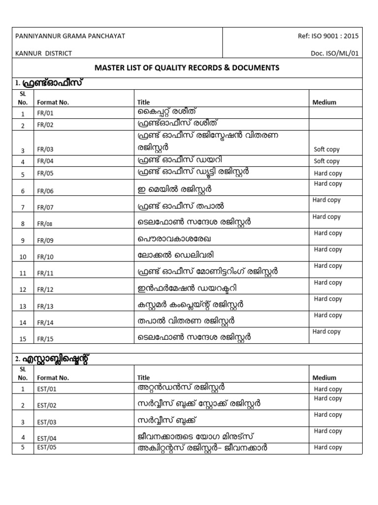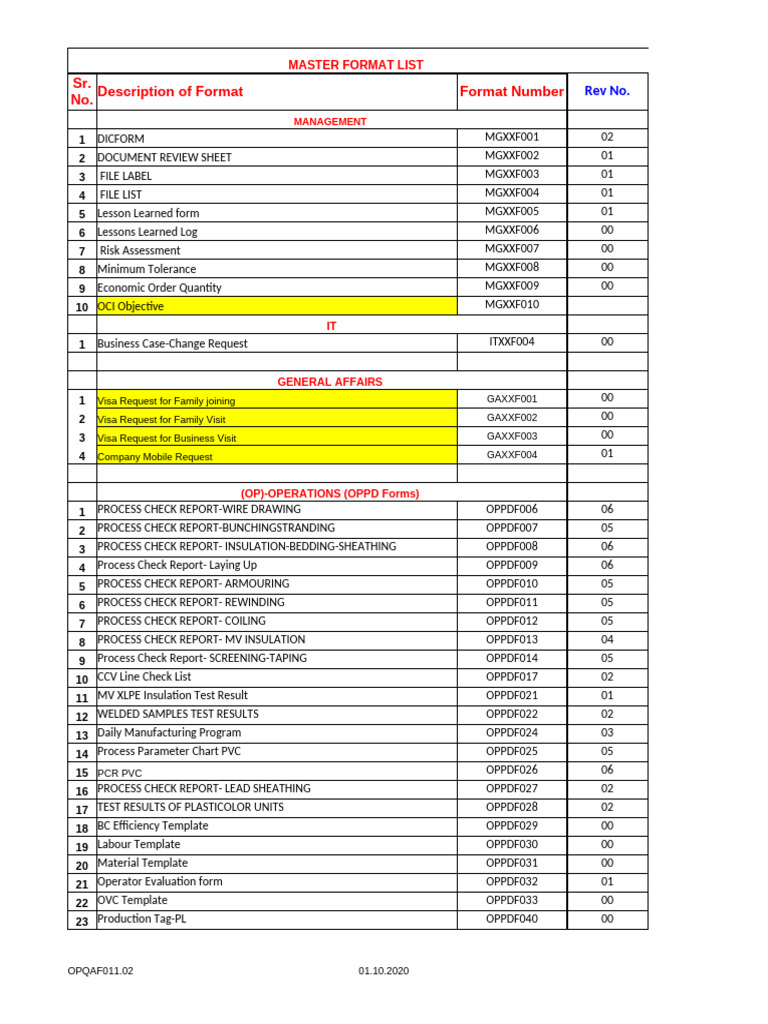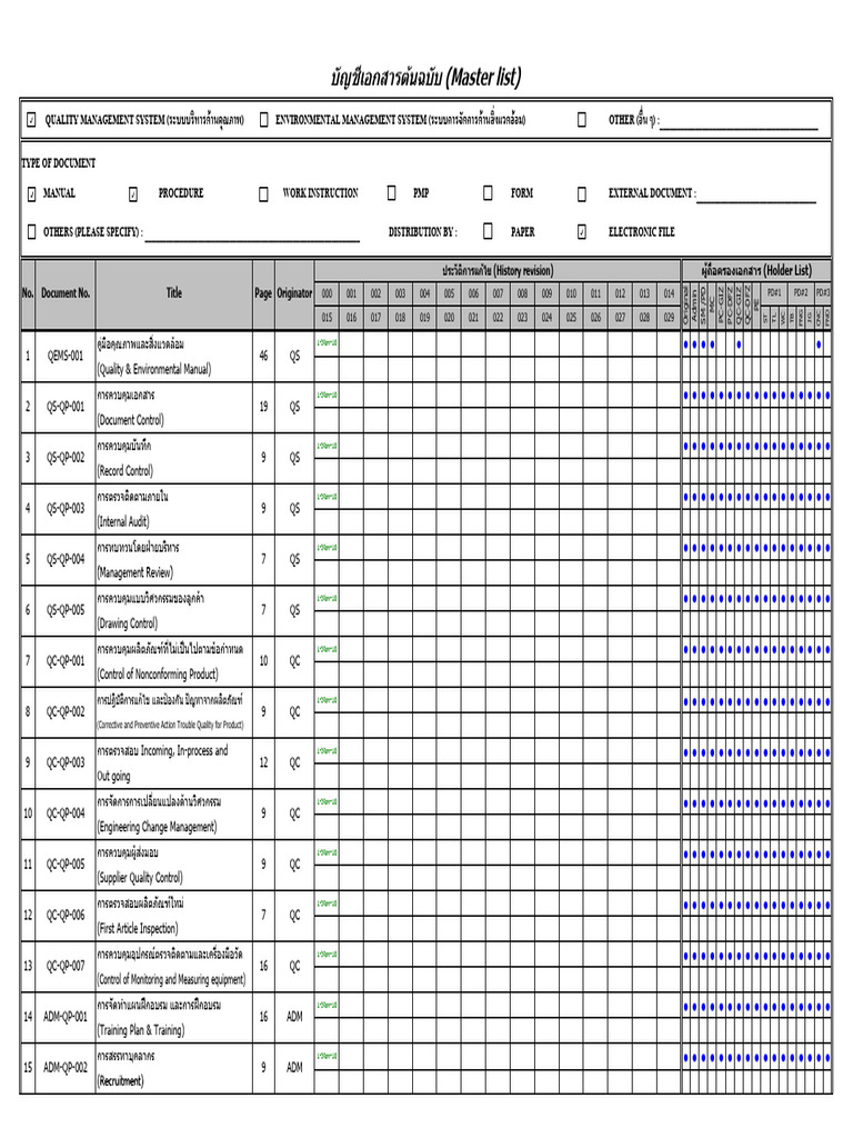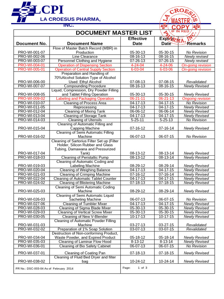 Sample Master List of Maintained Documents Document Controller MFR ...