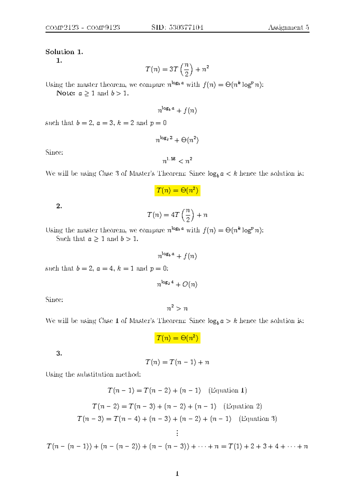 DSA 1: Master Theorem & Recurrence Relations Analysis - Studocu