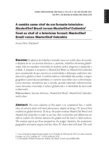 (PDF) Food as chef of a television format: MasterChef Brazil versus ...