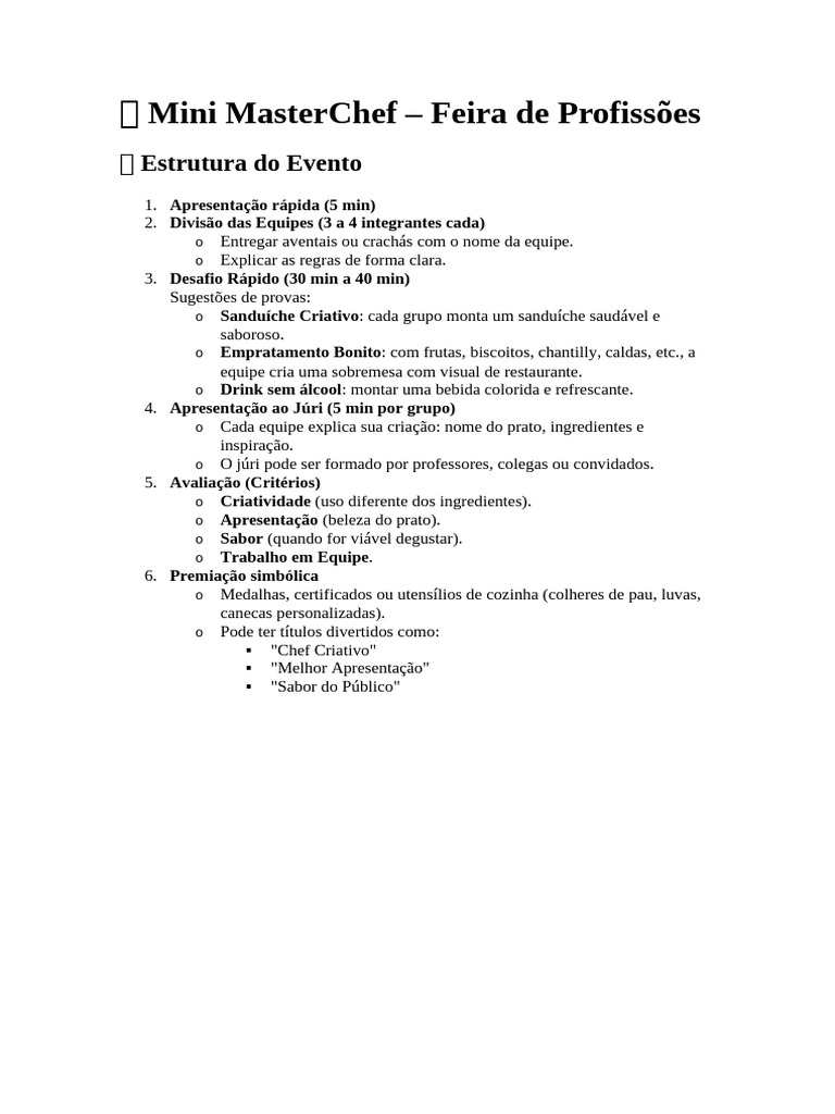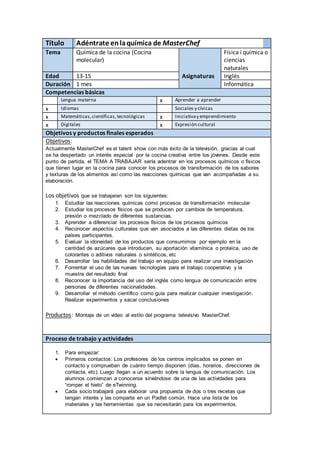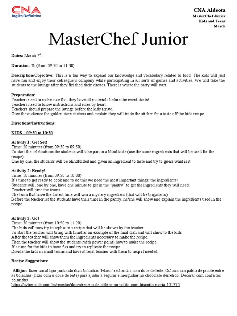 MasterChef Junior Plan | PDF | Food And Drink Preparation | Confectionery