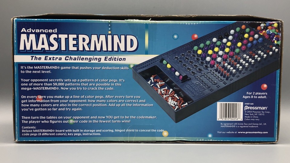Advanced Mastermind The Extra Challenging Edition Board Game Pressman ...