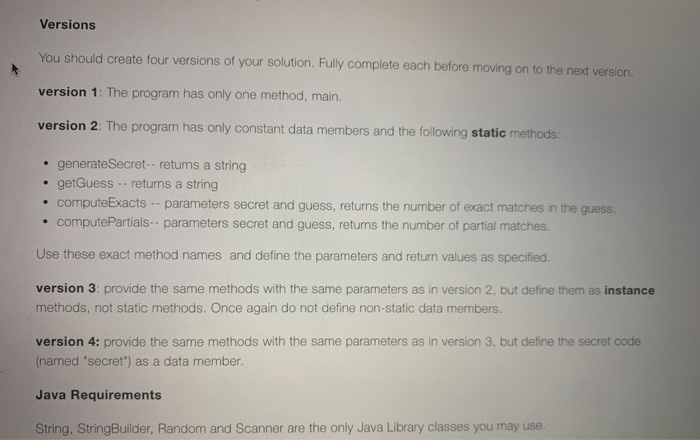 Solved Mastermind program write in Java. Please only use | Chegg.com