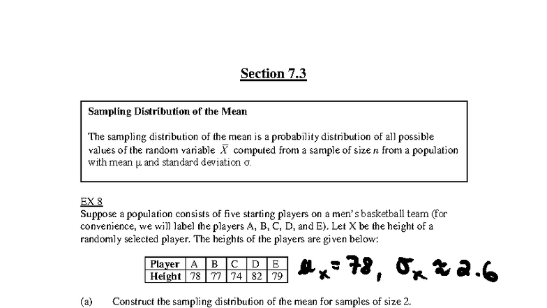 MAT 108 Lecture Notes: Sampling Distribution of the Mean (Sec 7.3 ...