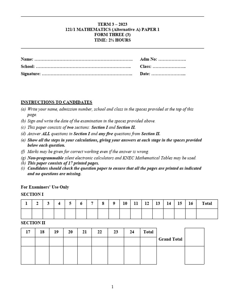 Form 3 Mat 121-1 (Za11.0) October 2023 Qp | PDF | Mathematics | Arithmetic