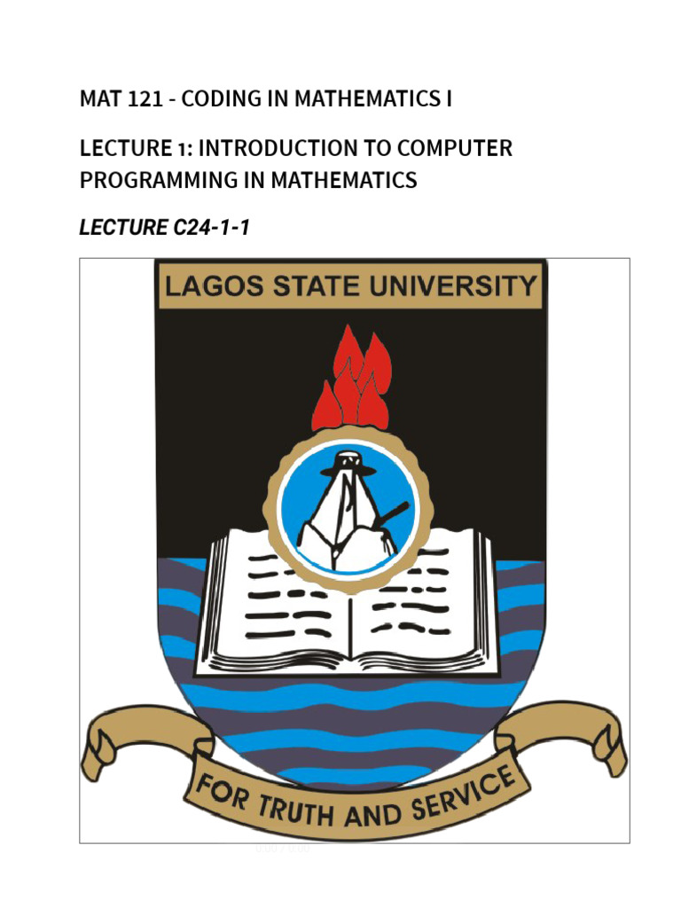 MAT 121 Lesson - 1 | PDF | Computer Programming | Mathematics