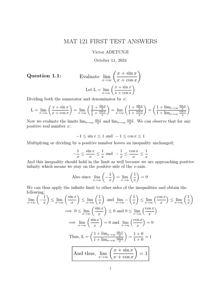 SOLUTION: Mat 121 differential and integral calculus - Studypool