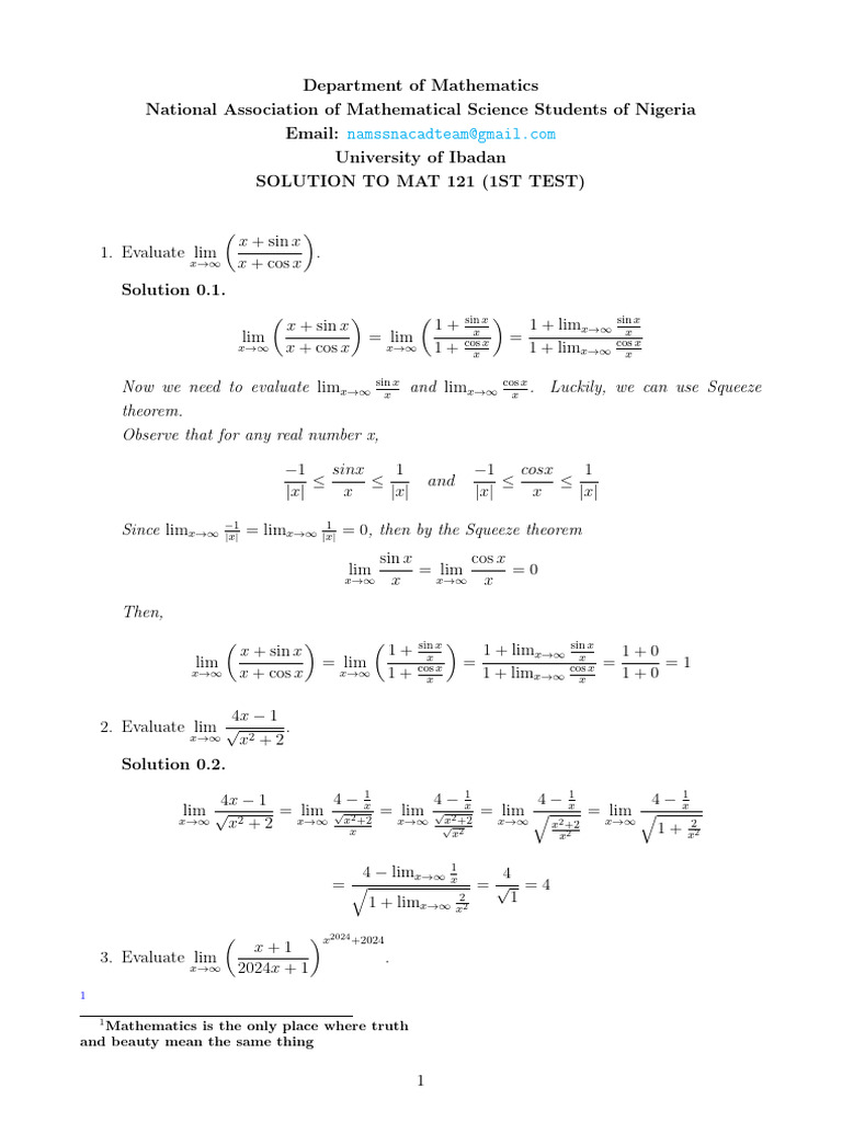 Solution To Mat 121 Test 2024 | PDF | Trigonometric Functions | Special ...