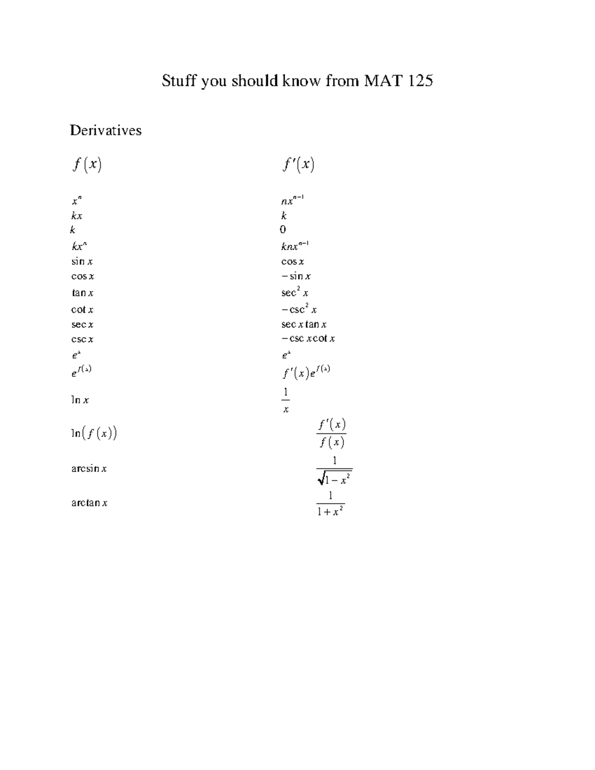Stuff you should remember from MAT 125 - Stuff you should know from MAT ...