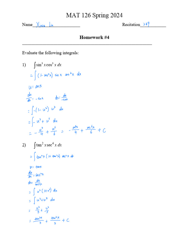 Paper HW 4 For MAT 126 Spring 2025 | PDF