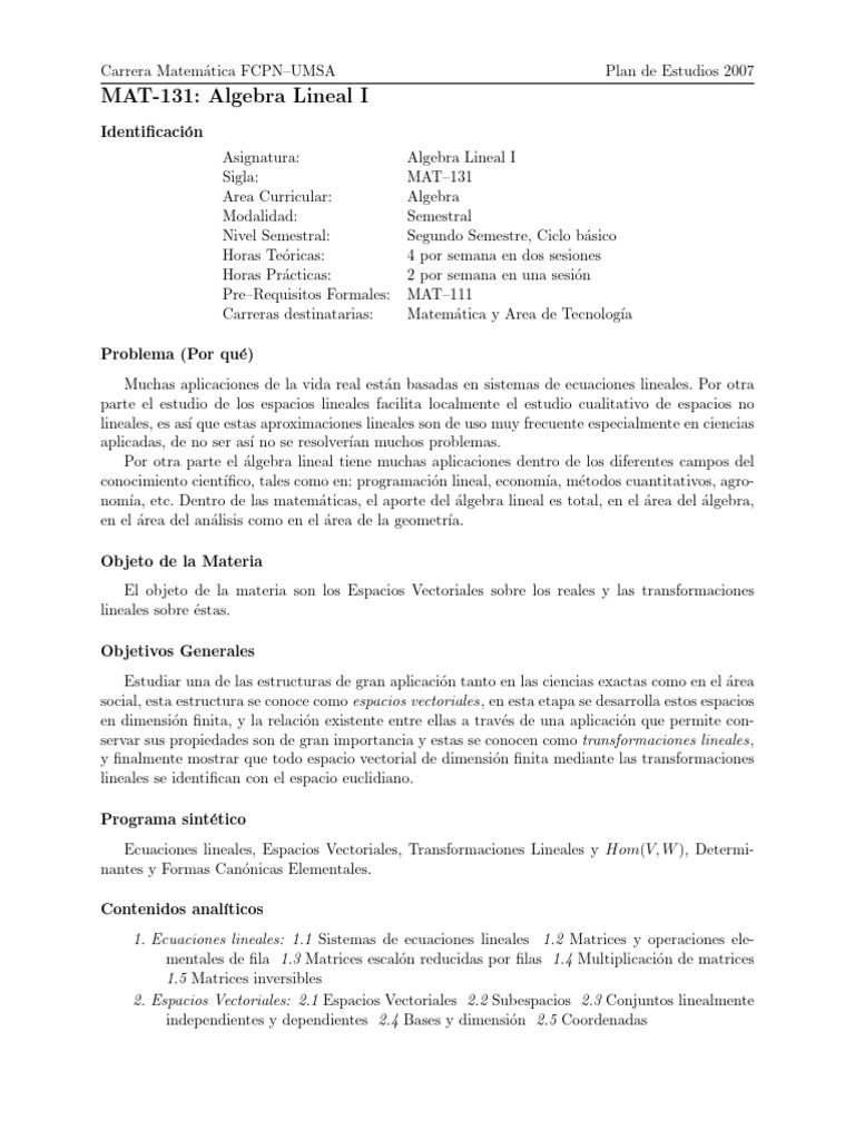 MAT-131 - Algebra Lineal I | PDF | Computers