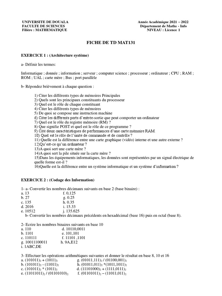 Mat 131 TD | PDF | Adresse IP | Informatique