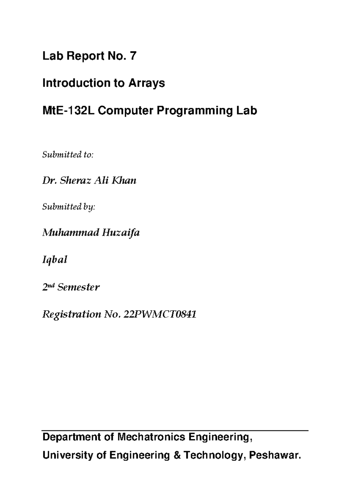 Lab No. 7: Introduction to Arrays - MtE-132L Computer Programming - Studocu