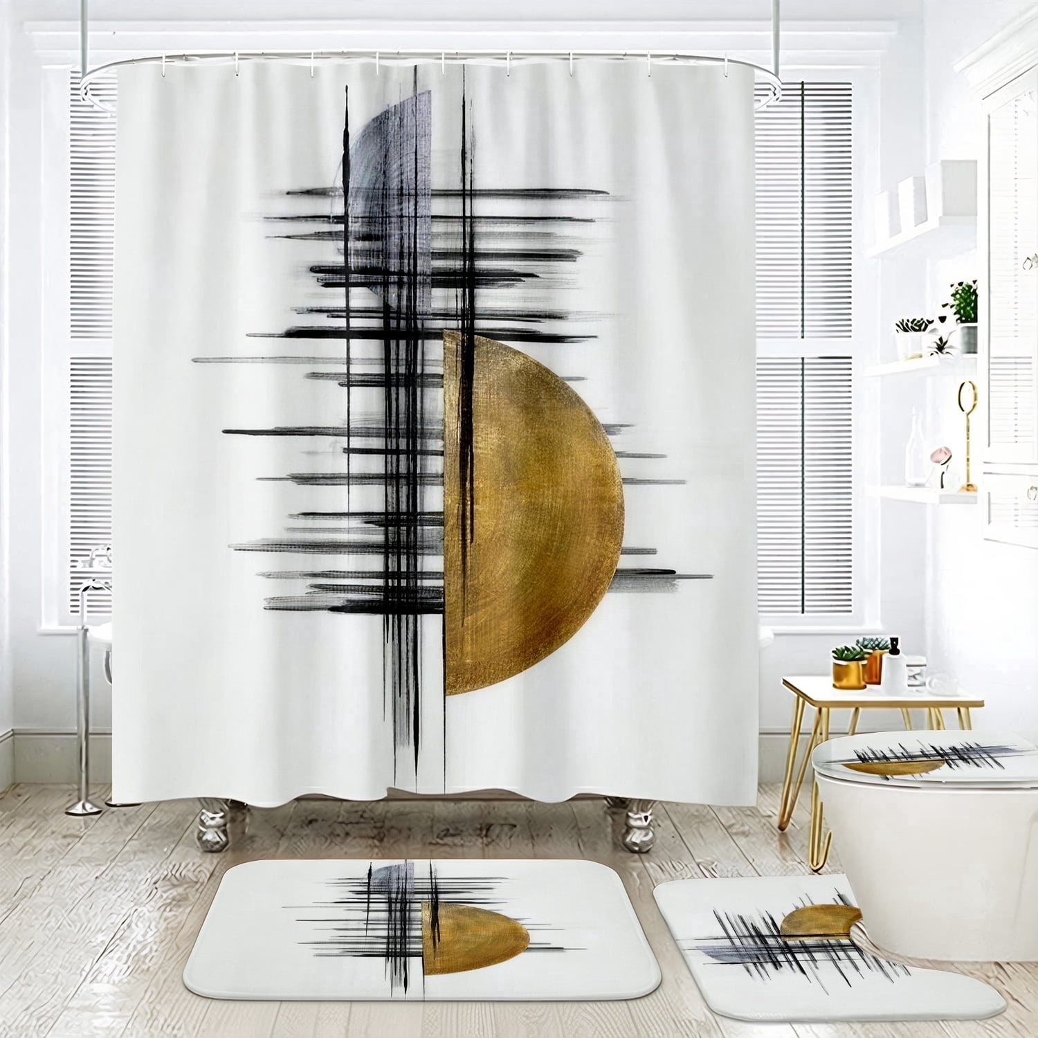 4PCS Contemporary Art Shower Curtain Set with Non-Slip Rugs Toilet Lid ...